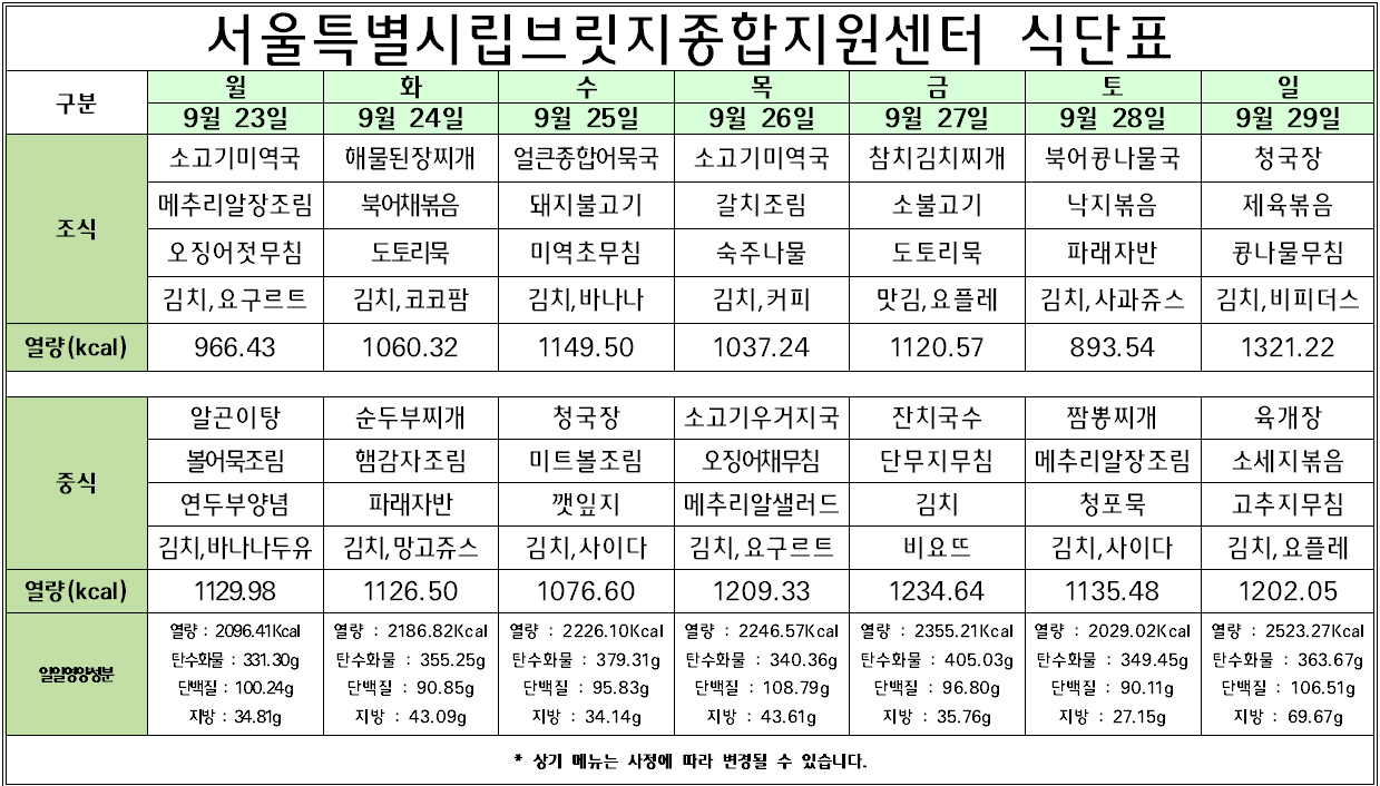 2024. 9. 23.(¿ù) ~ 9. 29.(ÀÏ)½Ä´Ü